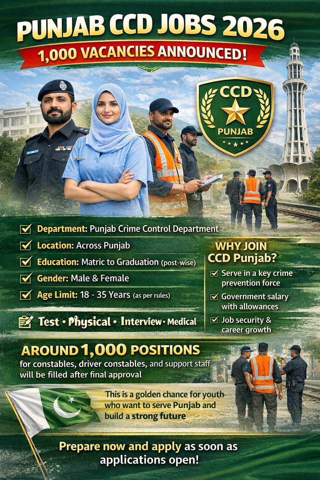 According to the official decision, a total of 1,000 vacancies are set to be recruited in the Crime Control Department (CCD). Punjab CCD Jobs 2026 have attracted significant attention from job seekers across Punjab who are looking for secure, respectable, and career-oriented government employment. The Crime Control Department (CCD) Punjab plays a vital role in maintaining law and order, preventing organized crime, and supporting modern policing initiatives. Due to increasing public demand for safety and transparency, CCD has expanded its operational scope, which has resulted in new job opportunities for educated, skilled, and motivated individuals.
